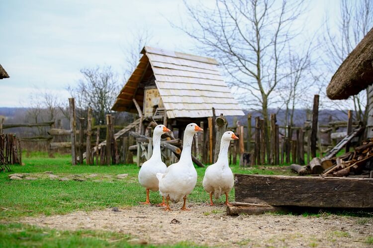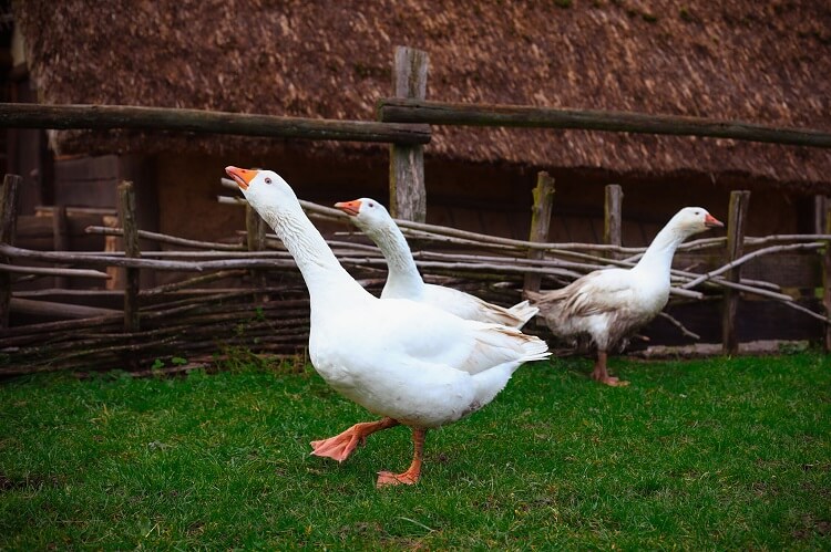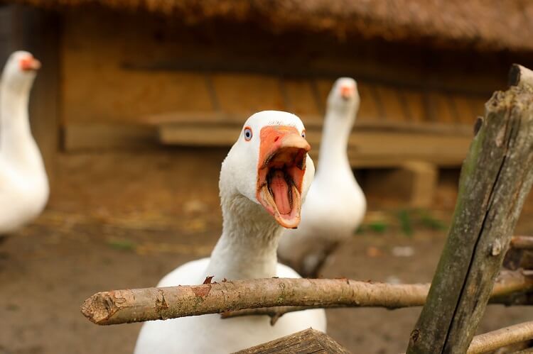 L’oie d’Emden :Les oies sont les précieuses alliées des femmes et des hommes. Depuis très longtemps, elles sont présentes dans nos basses-cours, où elles se promènent fièrement, accompagnant le jars, ce mâle insolent qui toise ses congénères. Le bavardage d’une oie est très bruyant. Soit elle cacarde, soit elle siffle, soit elle criaille, mais elle est toujours assourdissante.