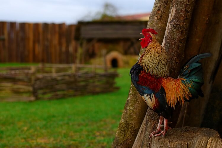 Le coq tient un rôle spécifique dans le troupeau. Lorsqu’il trouve un point d’alimentation intéressant (vers, larves, insectes), il le signale aux poules et les laisse manger sa trouvaille. Lorsqu’un prédateur s’approche ou qu’un rapace survole le troupeau, il donne l’alerte en poussant un grondement particulier. Dès qu’elles l’entendent, toutes les poules se mettent à l’abri sous un arbre ou un buisson. En cas d’attaque, le coq est celui qui fera face aux prédateurs. Il se sacrifie souvent pour donner le temps aux poules de s’enfuir.